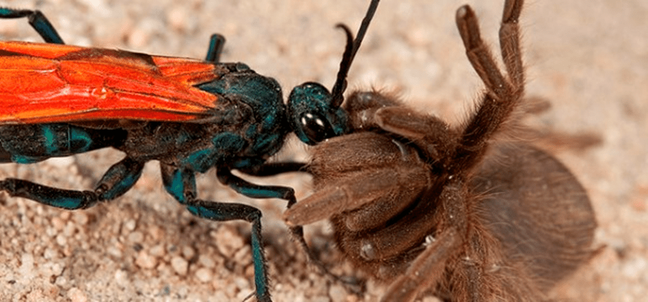 The Solitary Tarantula Hawk Wasp is another “largest” of its family. Its existence is a lifelong quest for the fierce tarantula, thus its name. Yet other predators along the way, including birds and lizards, are preying on the THW. Luckily its powerful venom delivers an instantaneous punch of excruciating and totally debilitating pain that lasts until the predator releases it from their grasp. “Leave me alone!”