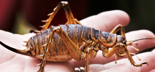 Resembling a large cricket, the giant weta species are among the largest and heaviest insects in the world. The name weta comes from the Maori word wetapunga, meaning “god of ugly things”. They are found primarily on New Zealand offshore islands, having been almost exterminated on the mainland islands by introduced mammal predators.
